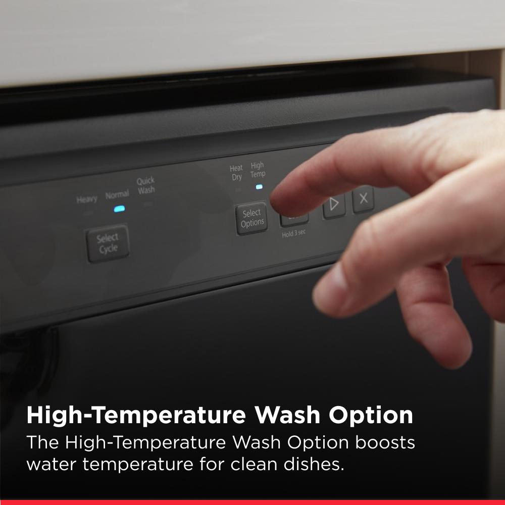- A heater boosts the water temperature during the wash cycle with the High-Temperature Wash Option. Plus, an extra rinse is added to help get those dishes clean.