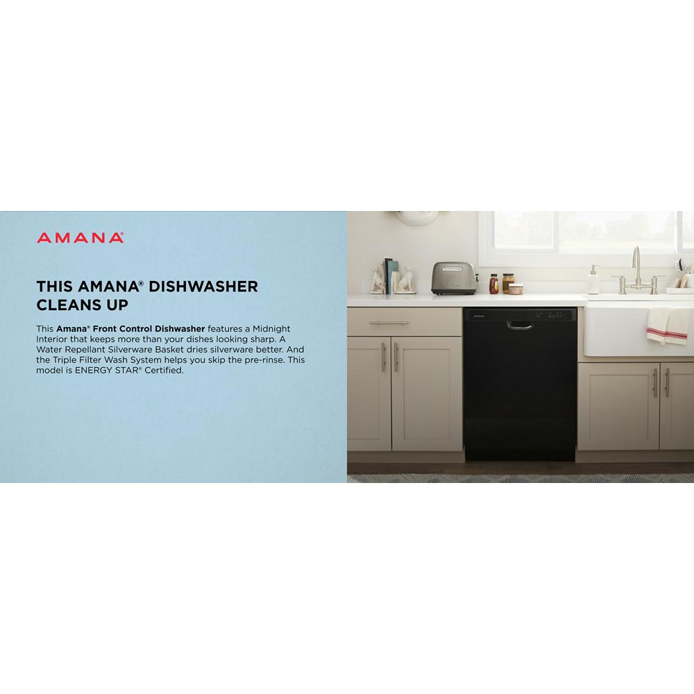 This Amana® Dishwasher cleans up. The Midnight Interior keeps more than your dishes looking sharp. A Water Repellant Silverware Basket dries silverware better. The Triple Filter Wash System helps you skip the pre-rinse, all while being ENERGY STAR® Certified to help you conserve energy and pay for less utilities.