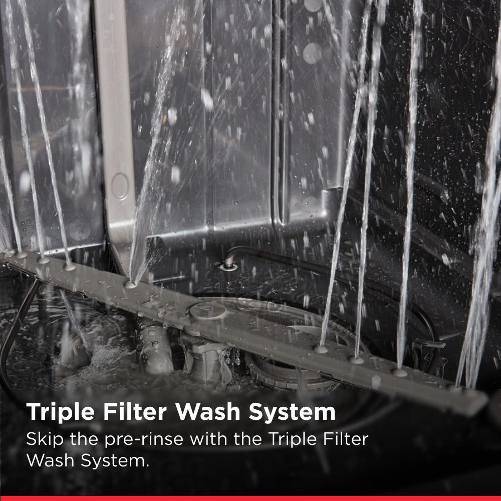 - The Triple Filter Wash System helps catch food soils during cycles so you can skip the pre-rinse song and dance.