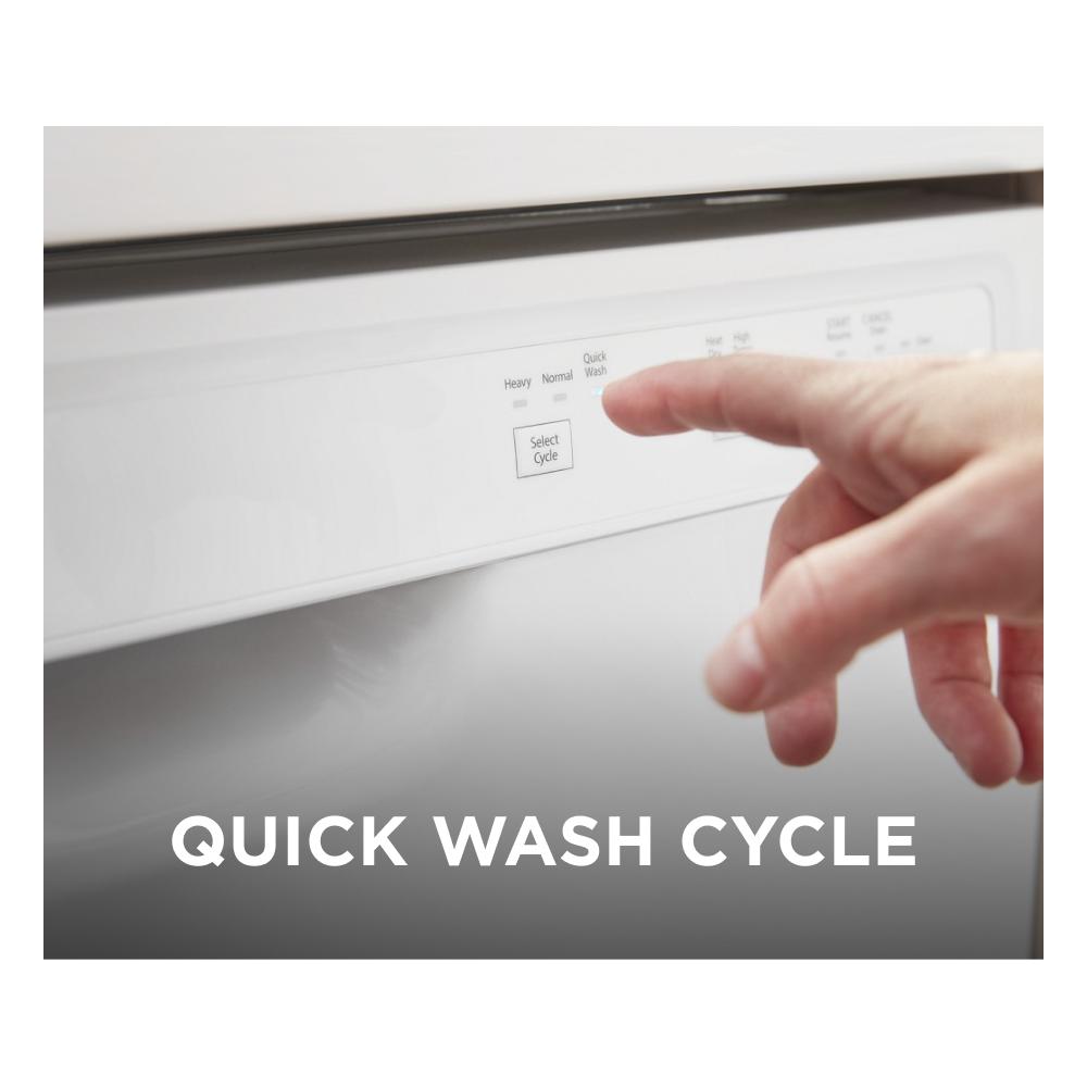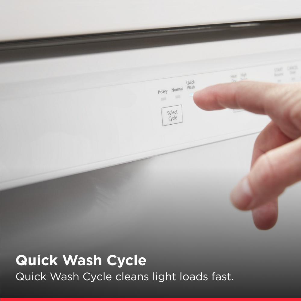 - There’s no need to get out the “back-up” dishes when the Quick Wash Cycle can clean light loads fast.