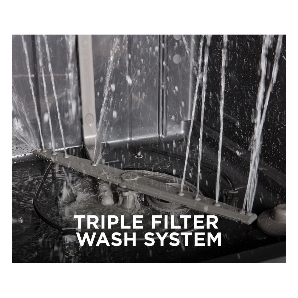 - The Triple Filter Wash System helps catch food soils during cycles so you can skip the pre-rinse song and dance.